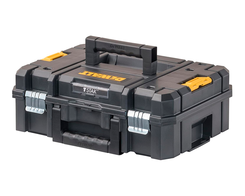 En el siguiente lugar nos encontramos con la caja DEWALT DWST17807, una alternativa muy completa para quienes buscan organización y resistencia en un solo producto. Su sistema apilable con hebillas laterales permite unir varias unidades de manera sencilla, creando un módulo compacto y ordenado que resulta perfecto para talleres o espacios reducidos, facilitando tanto el almacenamiento como el transporte.